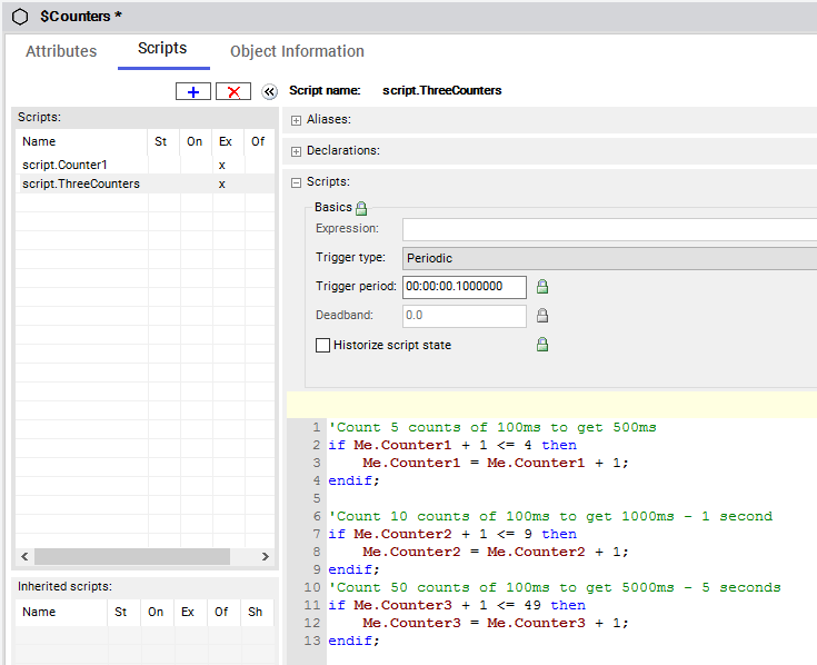 Using a different Periodic script (with a time base of 00:00:00.1000000) which is 100ms
