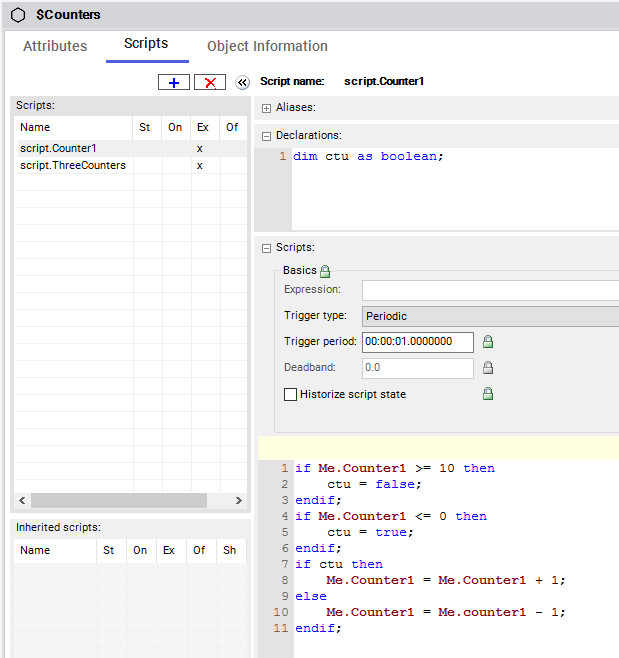 Exercise #1 - Create a counter in an object using object scripting that counts up at a rate of once per second, and goes from zero to ten, then starts over at zero.