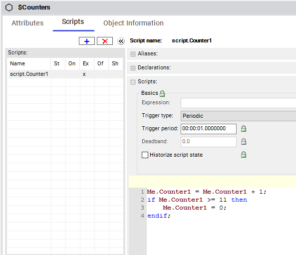 Exercise #1 - Create a counter in an object using object scripting that counts up at a rate of once per second, and goes from zero to ten, then starts over at zero.